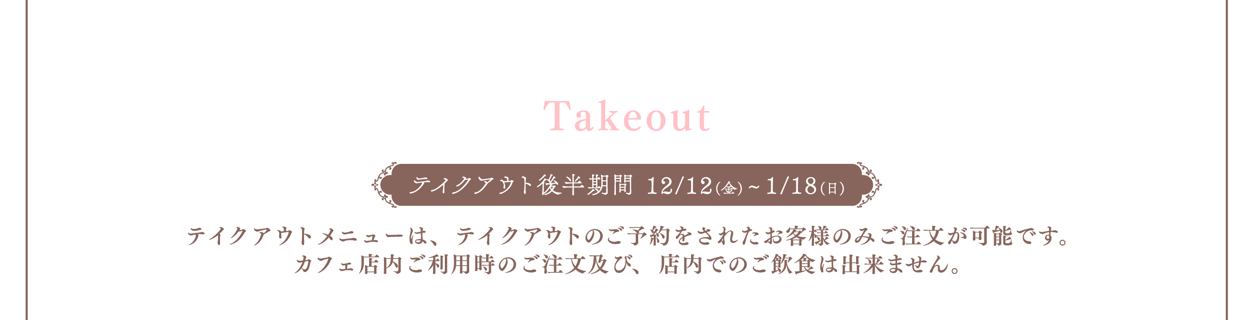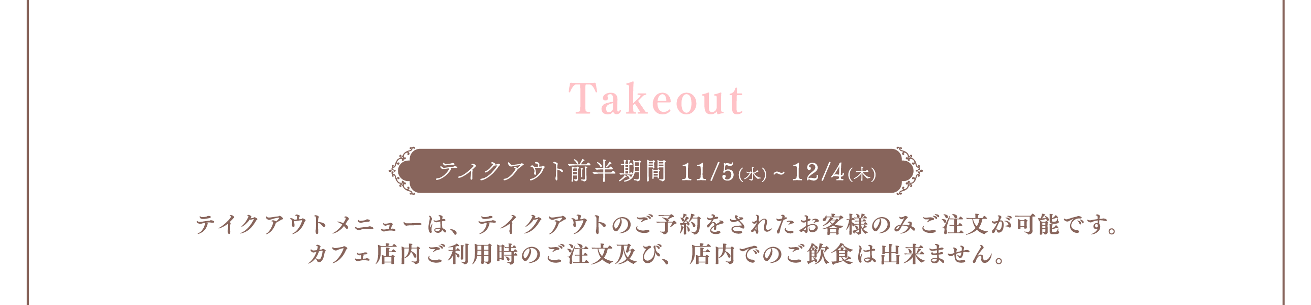 ※混雑回避のため、店内ご利用時の初回オーダーはお一人様合計5品までとさせていただきます。なお、それ以降の追加オーダーは可能です。